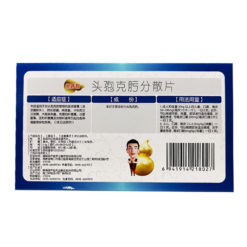 头孢克肟分散片 0.1g*16s 海南葫芦娃药业集团股份有限公司