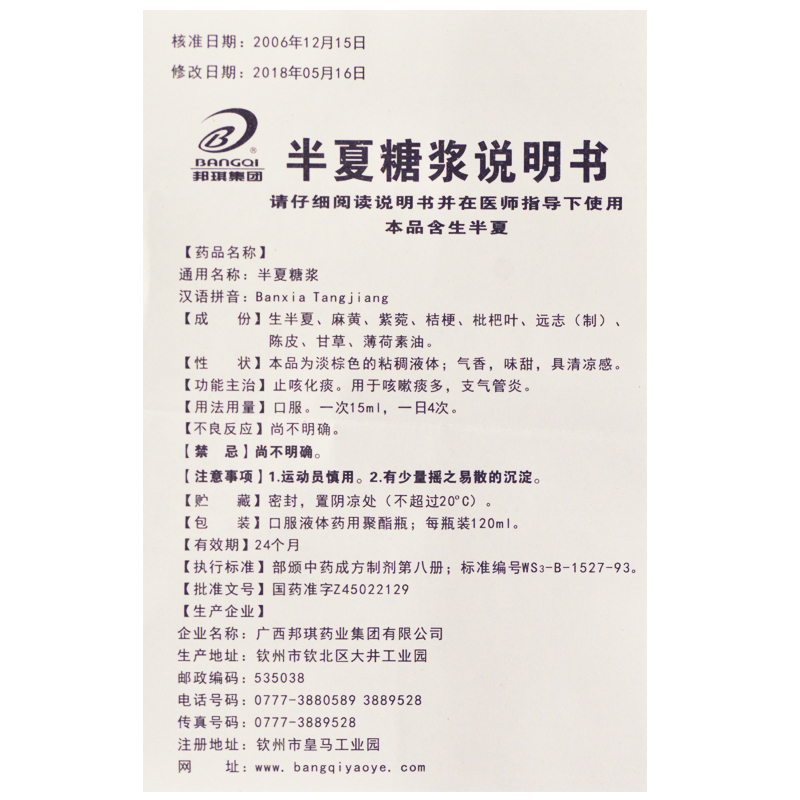 半夏糖浆 120ml/瓶 广西邦琪药业集团有限公司