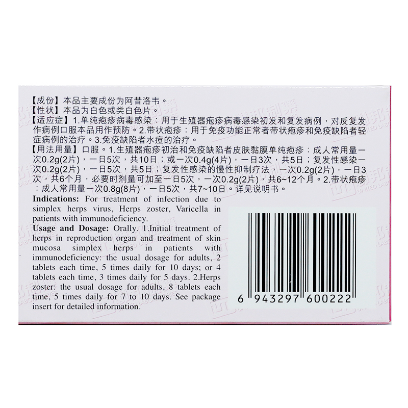 品  名: 阿昔洛韦片(阿思乐)