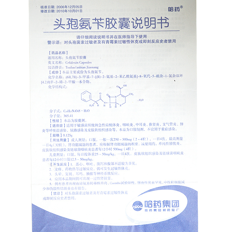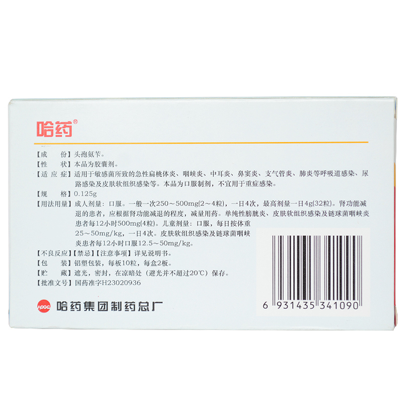 头孢氨苄胶囊 0.125g*20s 哈药集团制药总厂