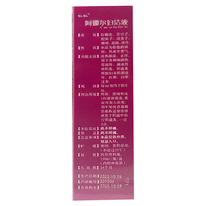 阿娜尔妇洁液 100ml/瓶 陕西关爱制药有限公司