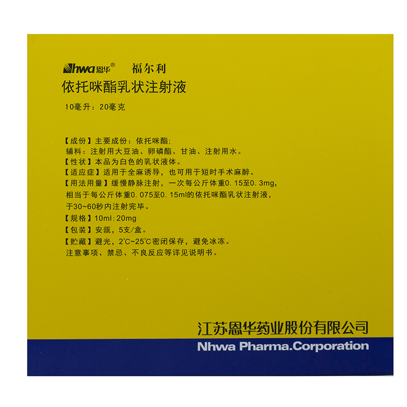 依托咪酯乳状注射液(福尔利) 10ml:20mg 江苏恩华药业股份有限公司