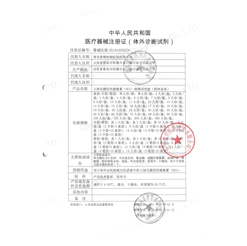 批准文号: 鲁械注准20162400576