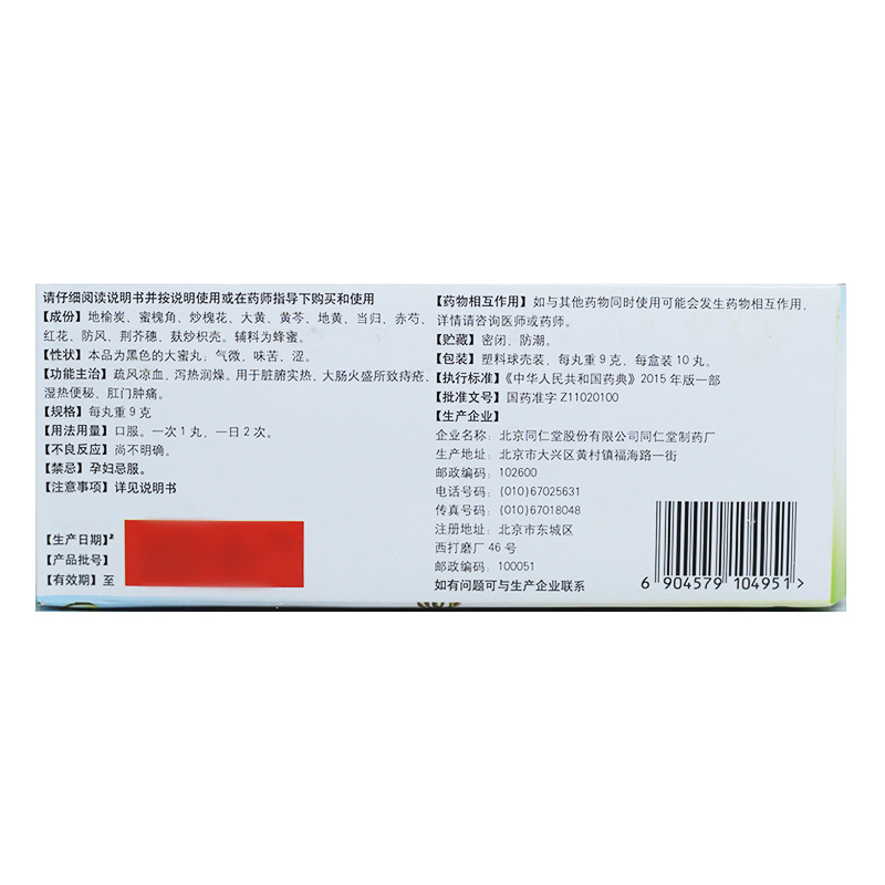 地榆槐角丸 9g*10丸 北京同仁堂股份有限公司同仁堂制药厂