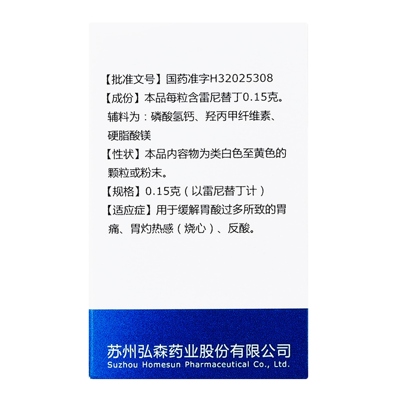 盐酸雷尼替丁胶囊 150mg*30s 苏州弘森药业股份有限公司