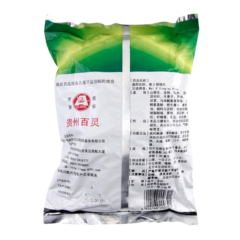维C银翘片 12s*40袋 贵州百灵企业集团制药股份有限公司
