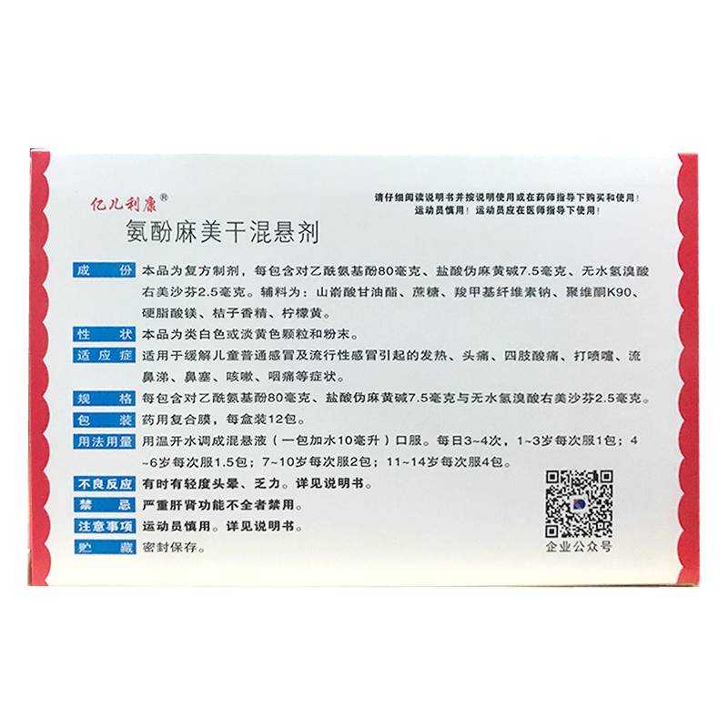 氨酚麻美干混悬剂 12包 浙江康德药业集团股份有限公司