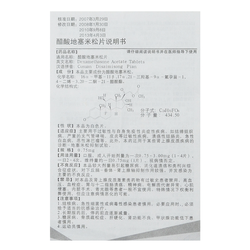 醋酸地塞米松片 0.75mg*100s 浙江仙琚制药股份有限公司