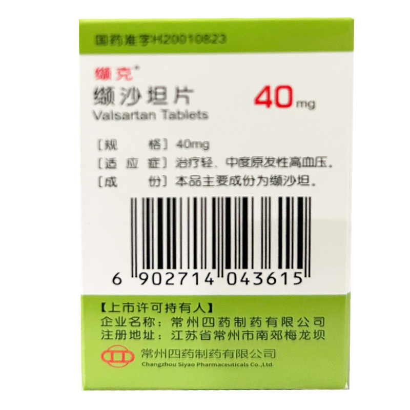 缬沙坦片 40mg*30s 常州四药制药有限公司