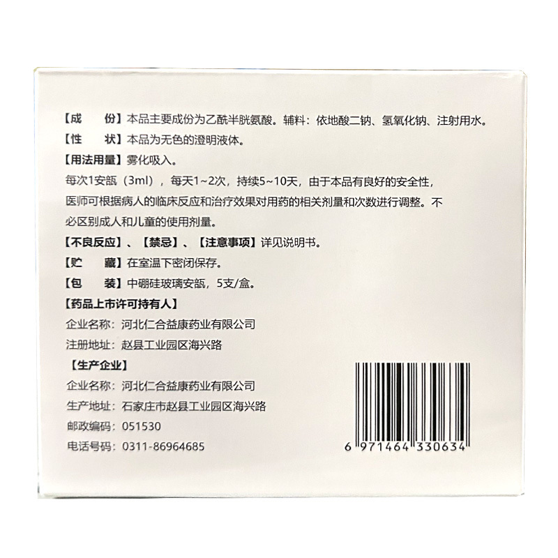 吸入用乙酰半胱氨酸溶液 3ml:0.3g 河北仁合益康药业有限公司