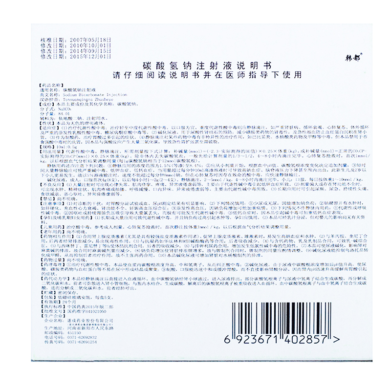 碳酸氢钠注射液 10ml:0.5g*5支 遂成药业股份有限公司(原天津新郑)