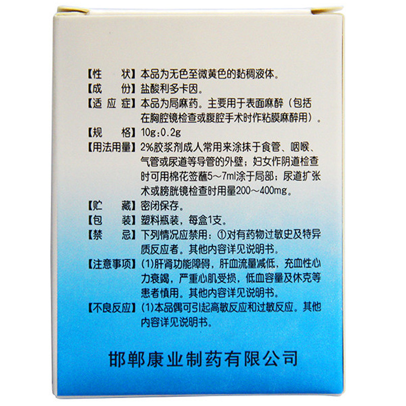 盐酸利多卡因胶浆(i) 10g:0.2g 邯郸康业制药有限公司