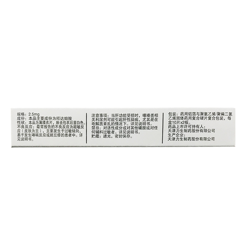 吲达帕胺片 2.5mg*20s 天津力生制药股份有限公司