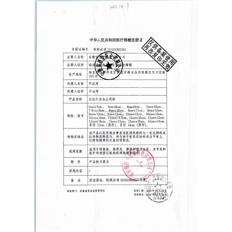 药品生产许可证编号: 皖食药监械生产许20170035号