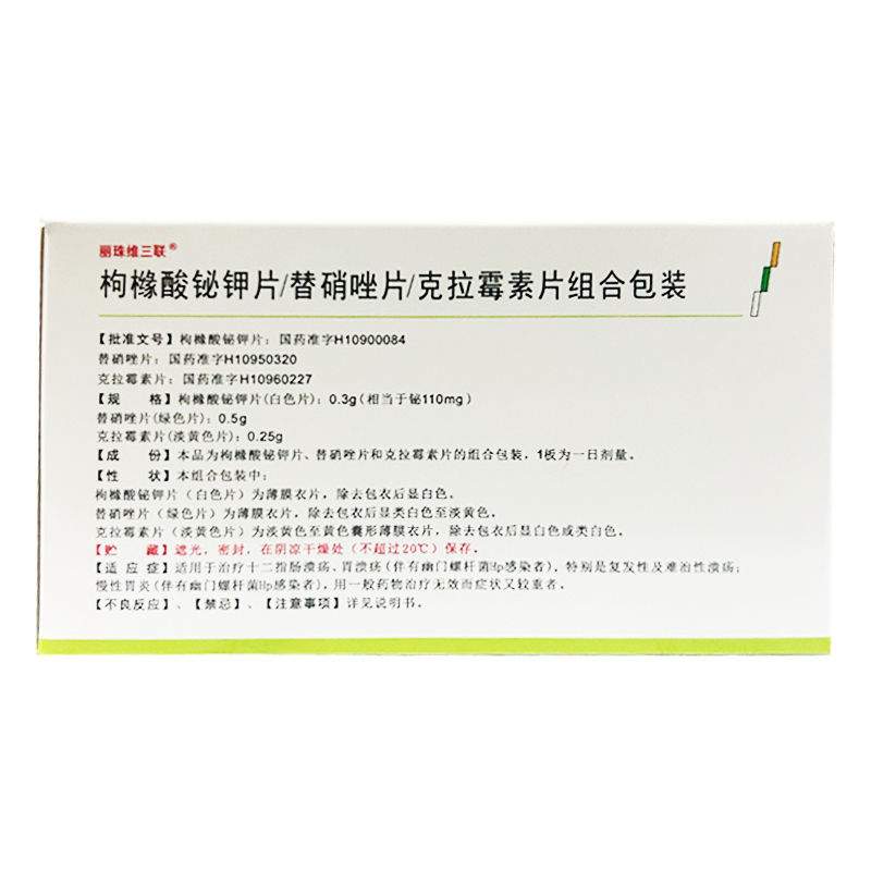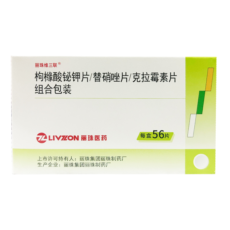 枸橼酸铋钾片/替硝唑片/克拉霉素片组合包装 56s 丽珠集团丽珠制药厂