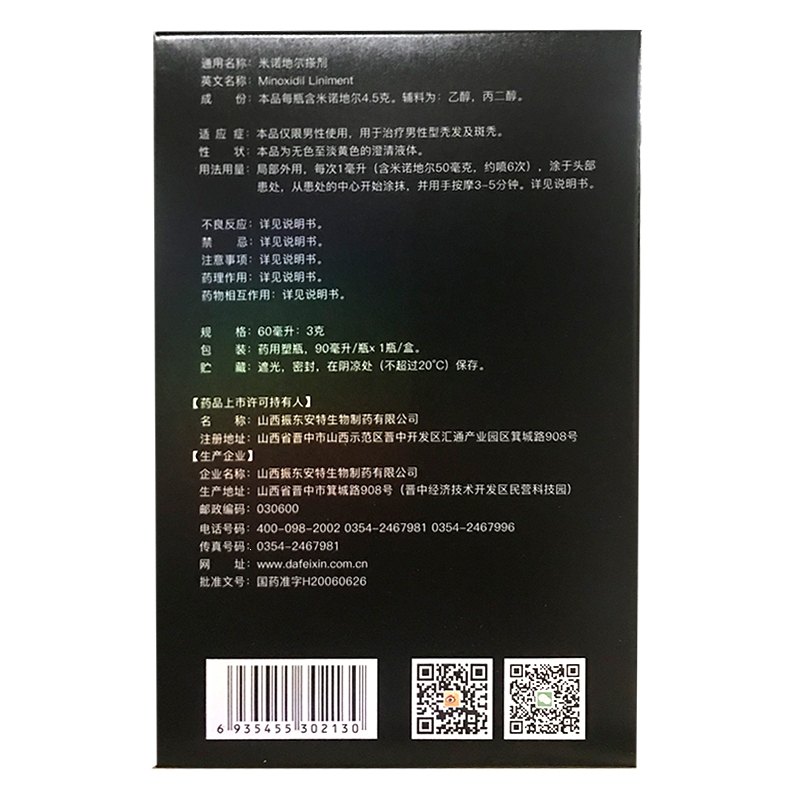 米诺地尔搽剂(达霏欣)男 90ml(60ml:3g) 山西振东安欣生物制药有限公司(原山西振东