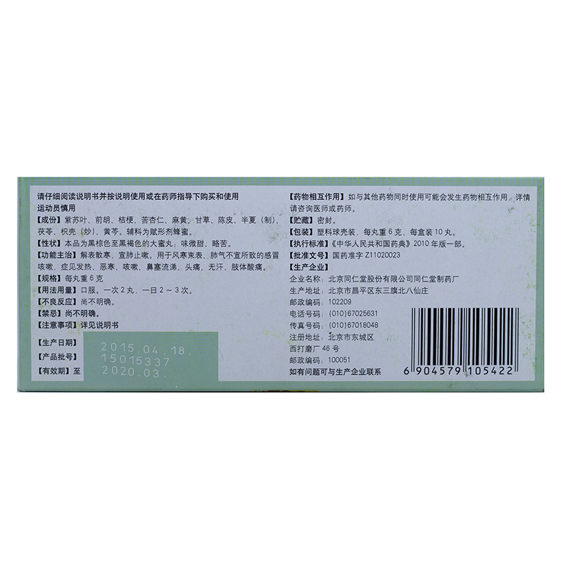 品  名: 通宣理肺丸(蜜丸)