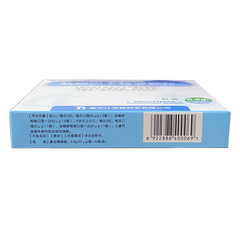 盐酸丙卡特罗颗粒 0.5g:25ug*6袋 黑龙江龙德药业有限公司