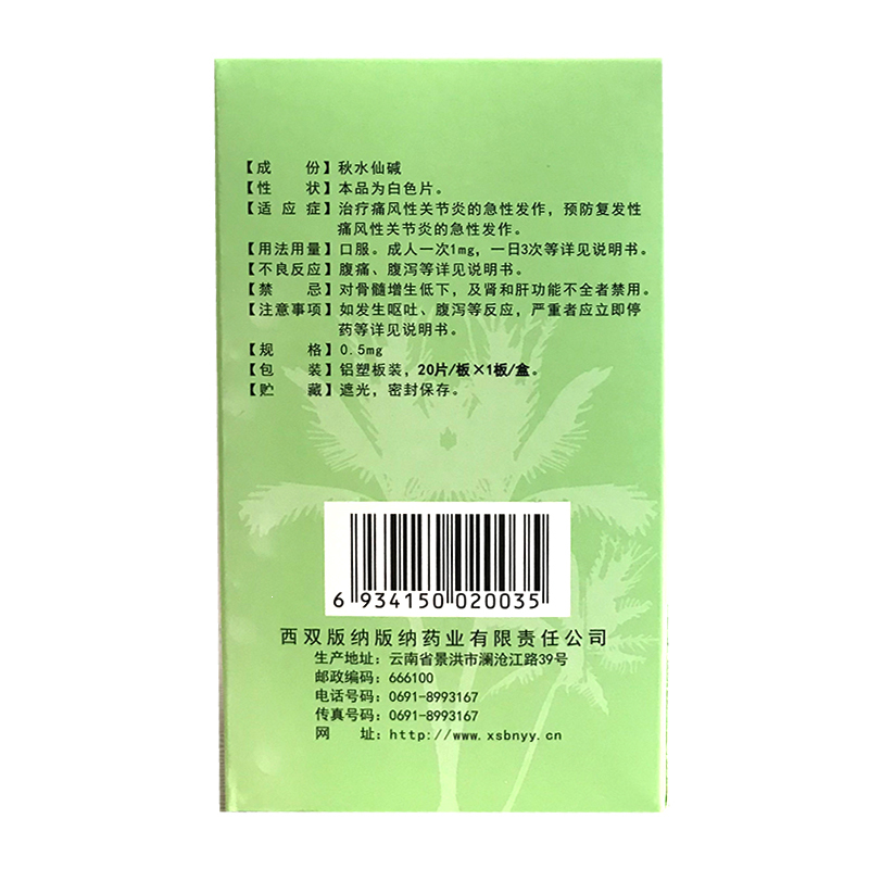 秋水仙碱片 0.5mg*20s 西双版纳版纳药业有限责任公司