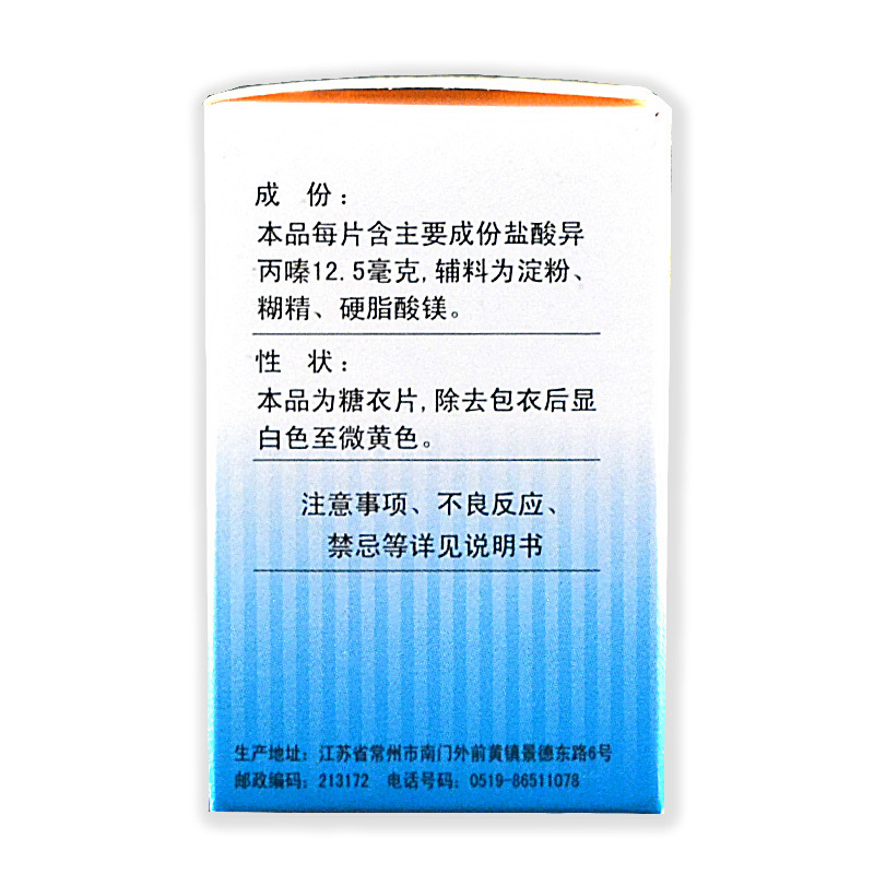 盐酸异丙嗪片 12.5mg*100s 常州康普药业有限公司