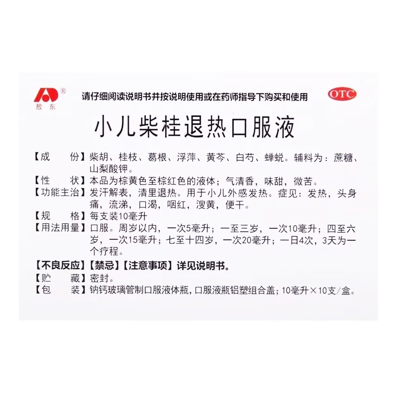小儿柴桂退热口服液 10ml*10支 吉林敖东延边药业股份有限公司