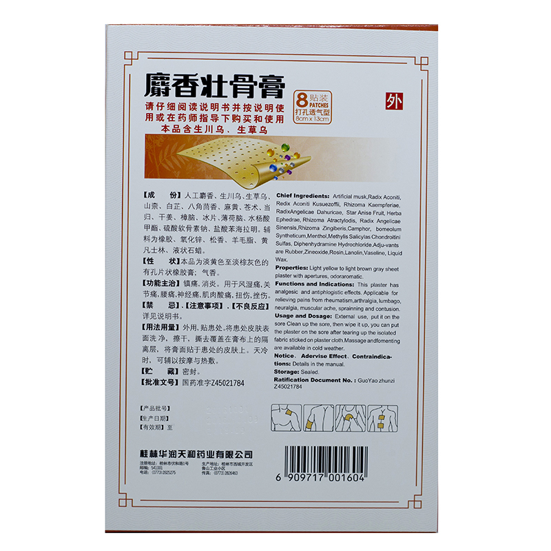麝香壮骨膏 8cm*13cm*8贴 桂林华润天和药业有限公司