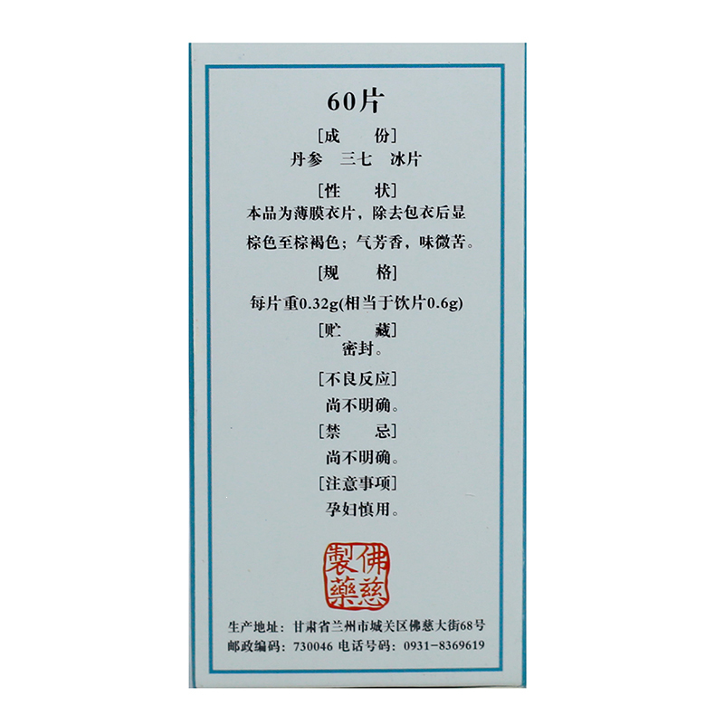 复方丹参片 60s/瓶 兰州佛慈制药股份有限公司