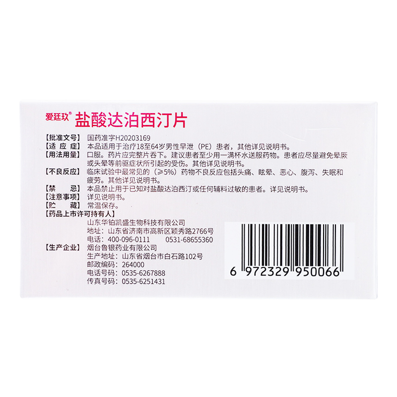 盐酸达泊西汀片 30mg*6s 烟台鲁银药业有限公司