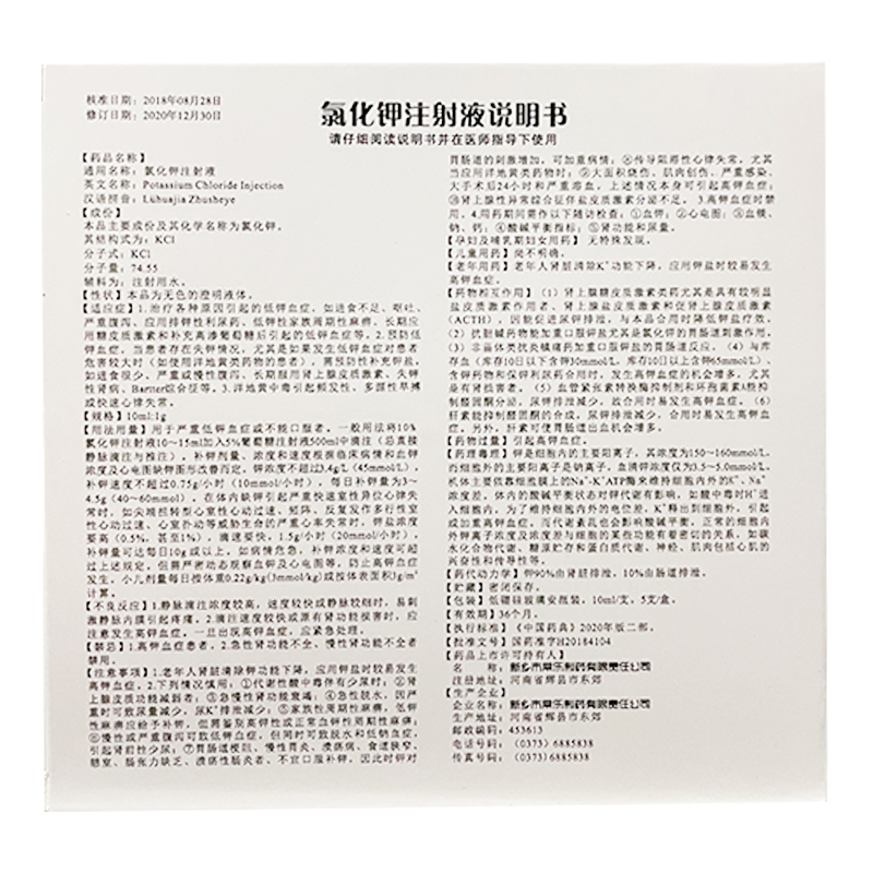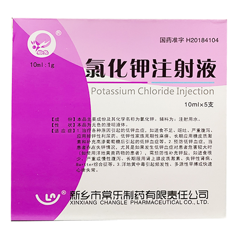 氯化钾注射液 10ml:1g 新乡市常乐制药有限责任公司