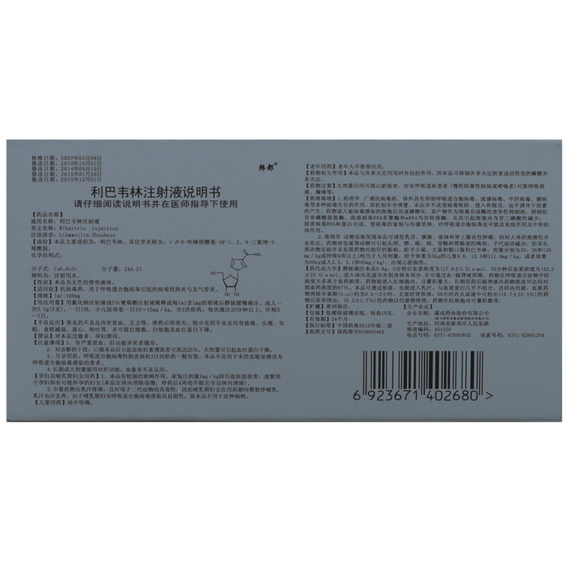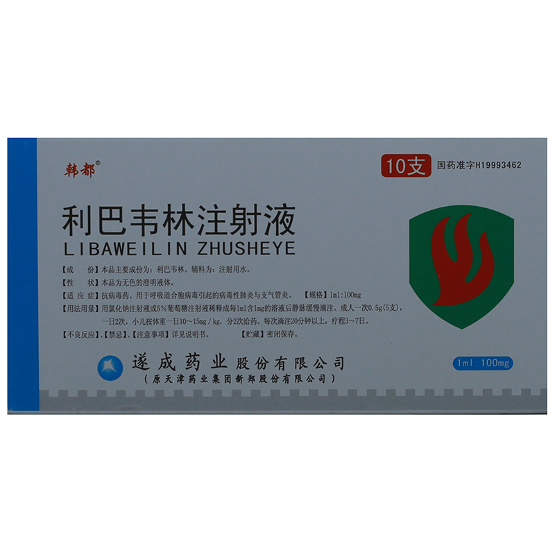 利巴韦林注射液(病毒唑针) 1ml:0.1g*10支 遂成药业股份有限公司(原天津新郑)