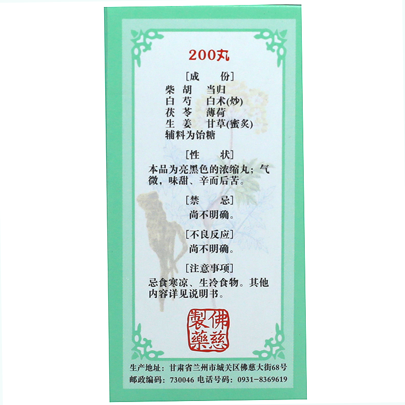 逍遥丸 200丸 兰州佛慈制药股份有限公司