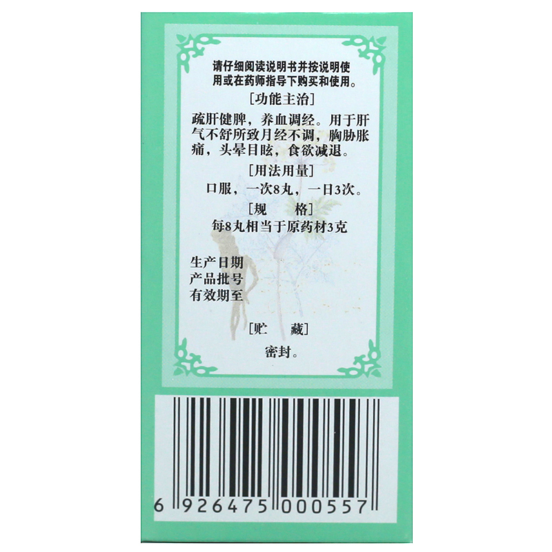 用于肝气不舒,胸胁胀痛,头晕目眩,食欲减退,月经不调。