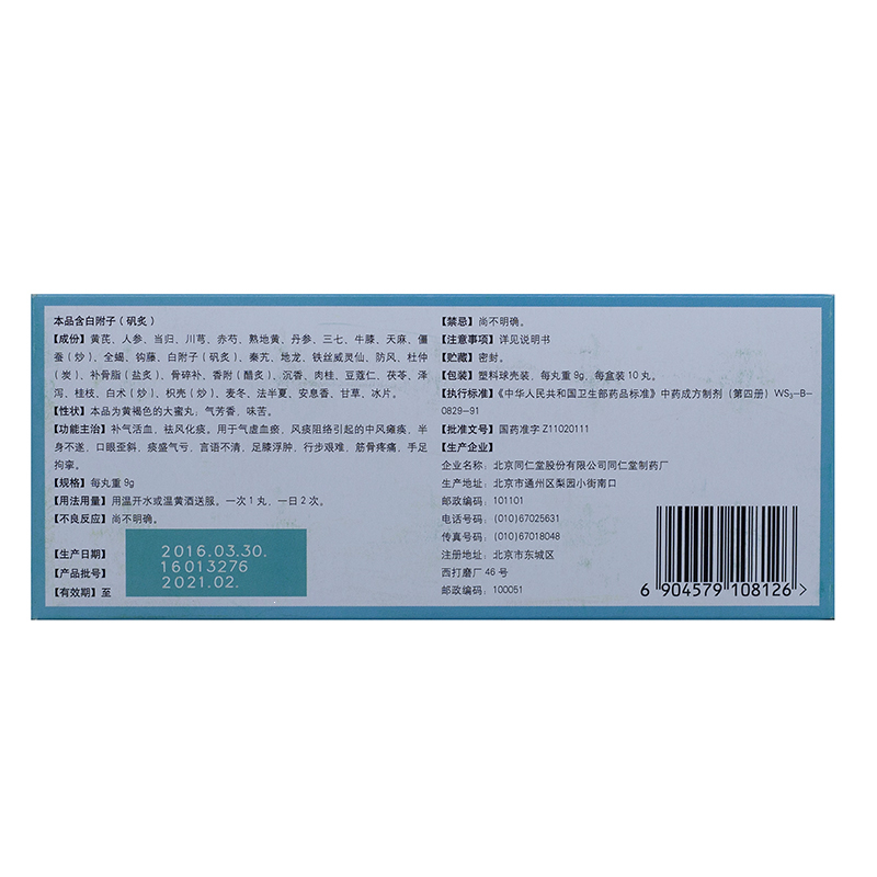 产  地: 北京同仁堂股份有限公司同仁堂制药厂
