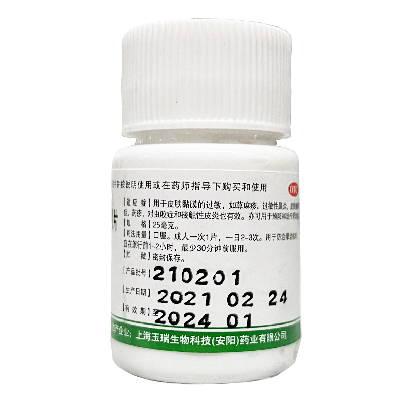 盐酸苯海拉明片 25mg*100s 上海玉瑞生物科技(安阳)药业有限公司