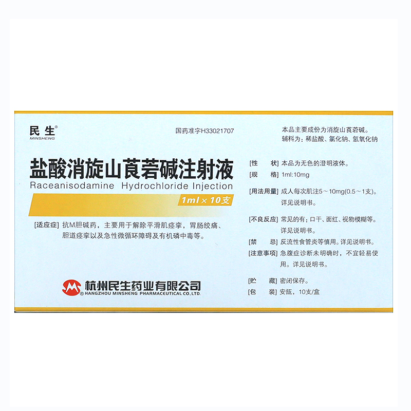 盐酸消旋山莨菪碱注射液(6542) 1ml:10mg*10支 杭州民生药业有限公司