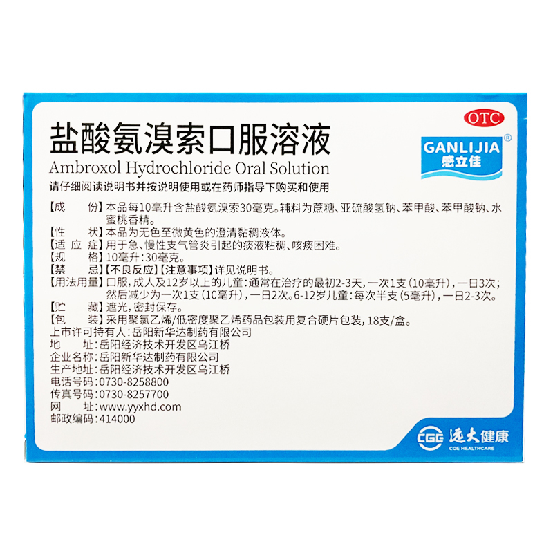 盐酸氨溴索口服溶液 10ml*18支 岳阳新华达制药有限公司