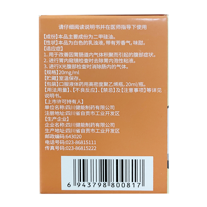 二甲硅油乳剂 20mg/ml(20ml/瓶) 四川健能制药有限公司