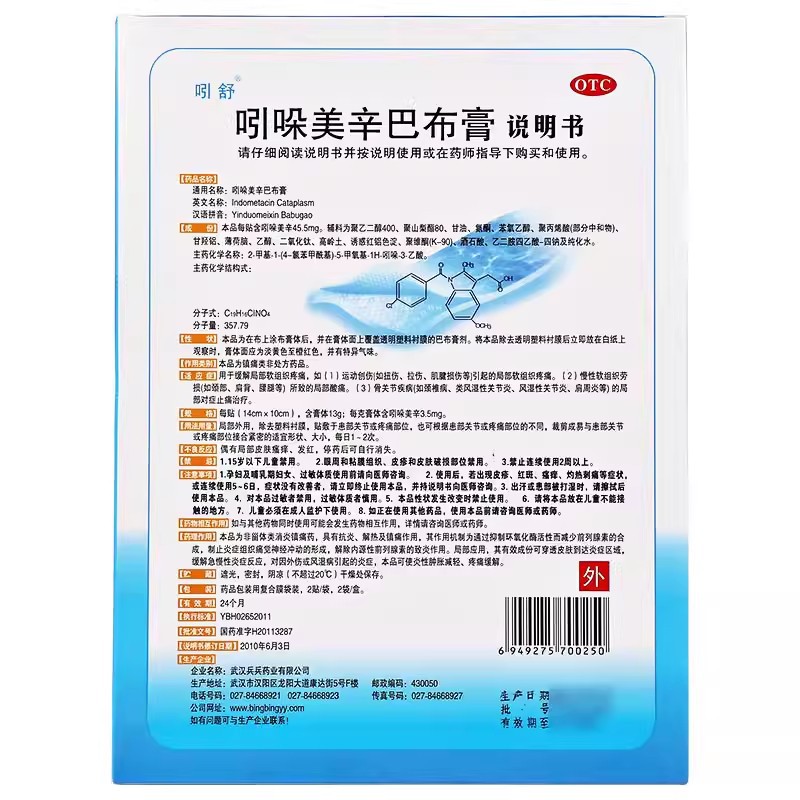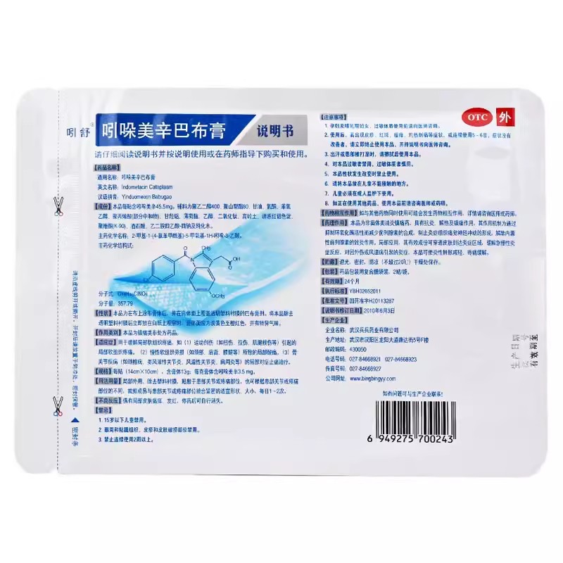 吲哚美辛巴布膏 14cm*10cm*4贴 湖北兵兵药业(集团)有限公司