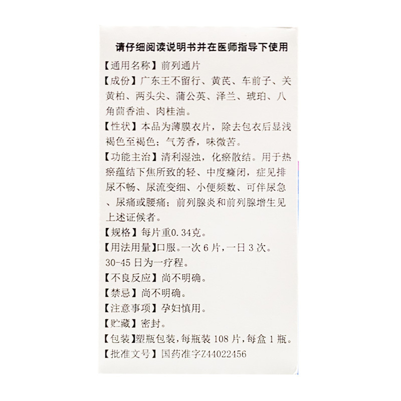 前列通片 0.34g*108s 广州白云山中一药业有限公司