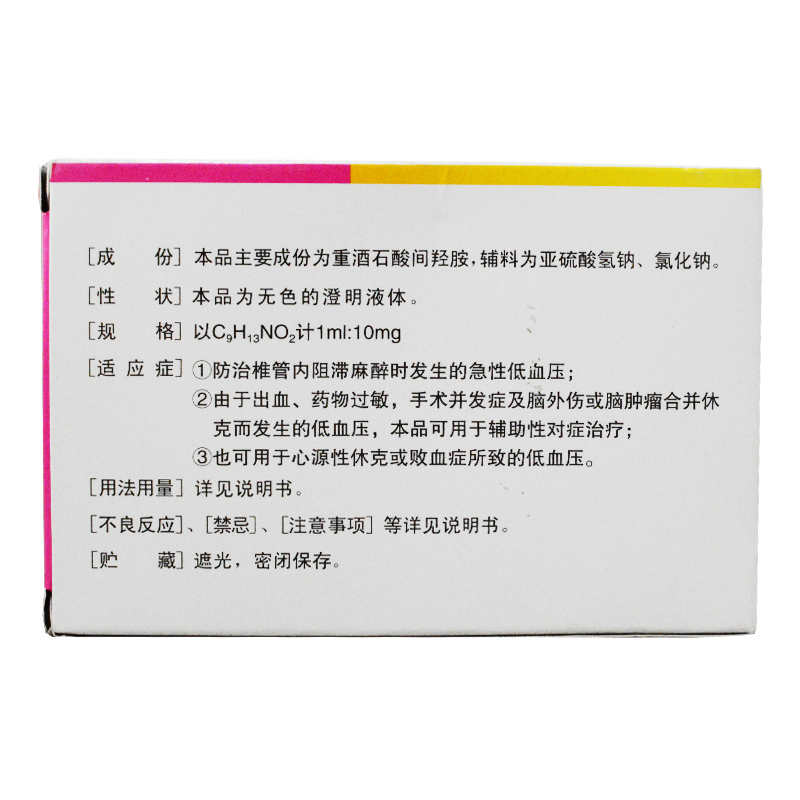 重酒石酸间羟胺注射液(阿拉明针) 1ml:10mg*2支 北京市永康药业有限公司