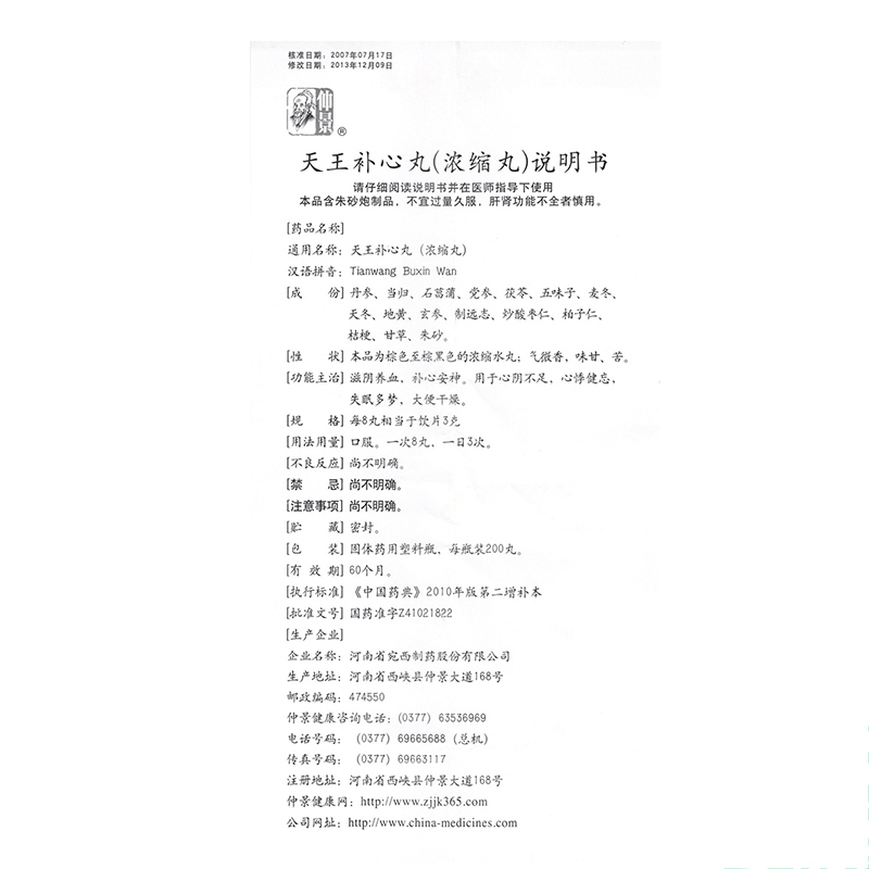 天王补心丸 200丸 仲景宛西制药股份有限公司