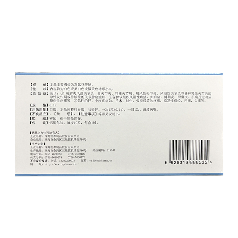 双氯芬酸钠缓释胶囊(欣泰青) 100mg*10s 珠海润都制药股份有限公司
