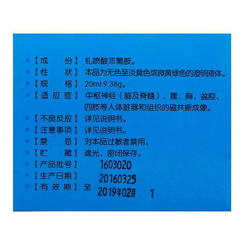 钆喷酸葡胺注射液 20ml:9.38g 北京北陆药业股份有限公司