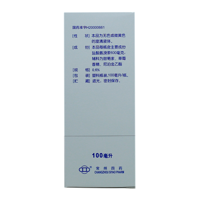 盐酸氨溴索口服溶液 100ml:0.6%(8) 常州四药制药有限公司