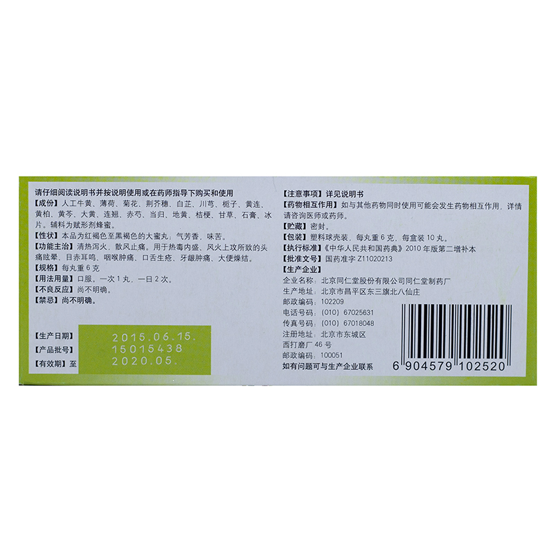 牛黄上清丸 6g*10丸 北京同仁堂股份有限公司同仁堂制药厂