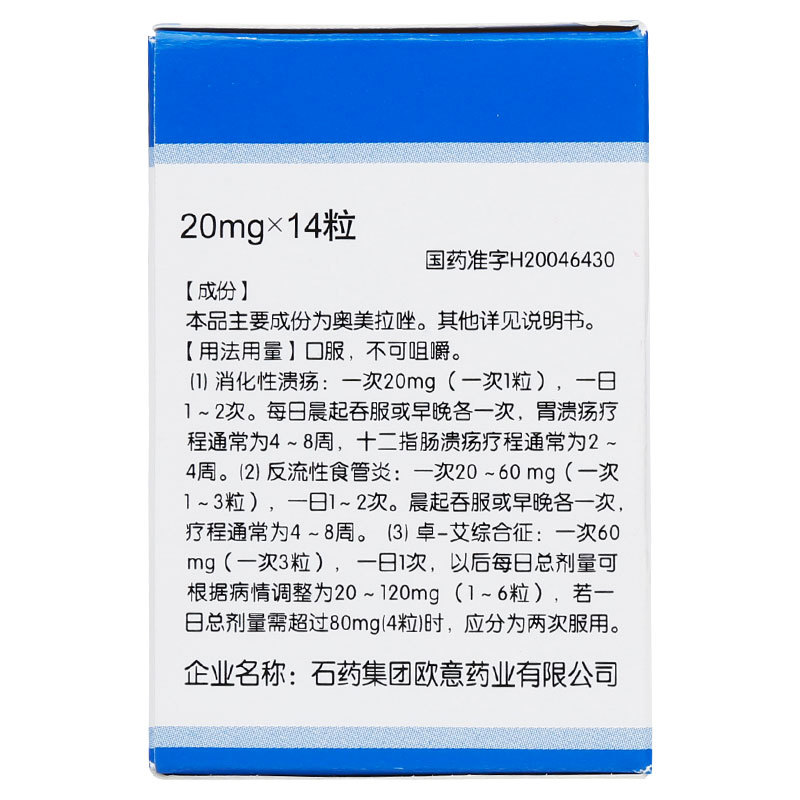 奥美拉唑肠溶胶囊 20mg*14s 石药集团欧意药业有限公司