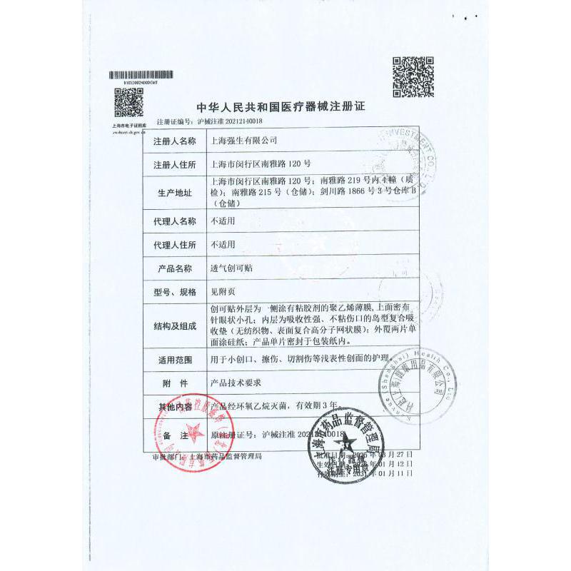 药品生产许可证编号: 沪食药监械生产许20000293号
