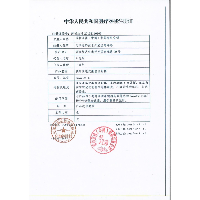品  名: 胰岛素笔式数显注射器(诺和笔5)
