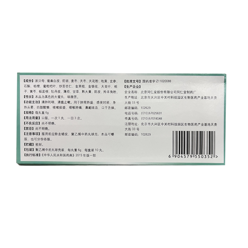 生产产商: 北京同仁堂股份有限公司同仁堂制药厂