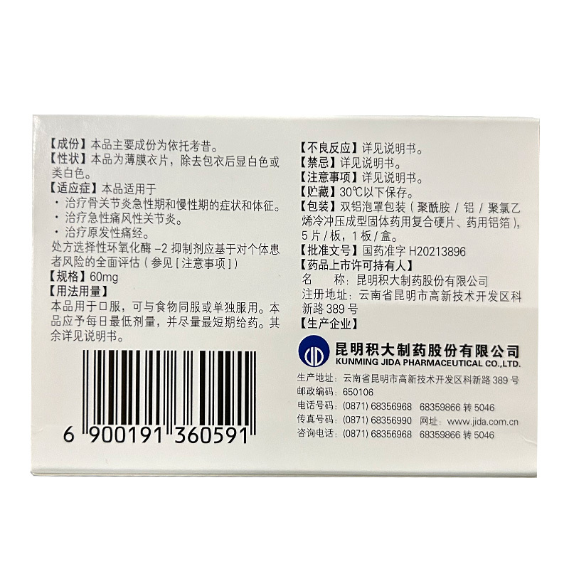 依托考昔片 60mg*5s 昆明积大制药股份有限公司